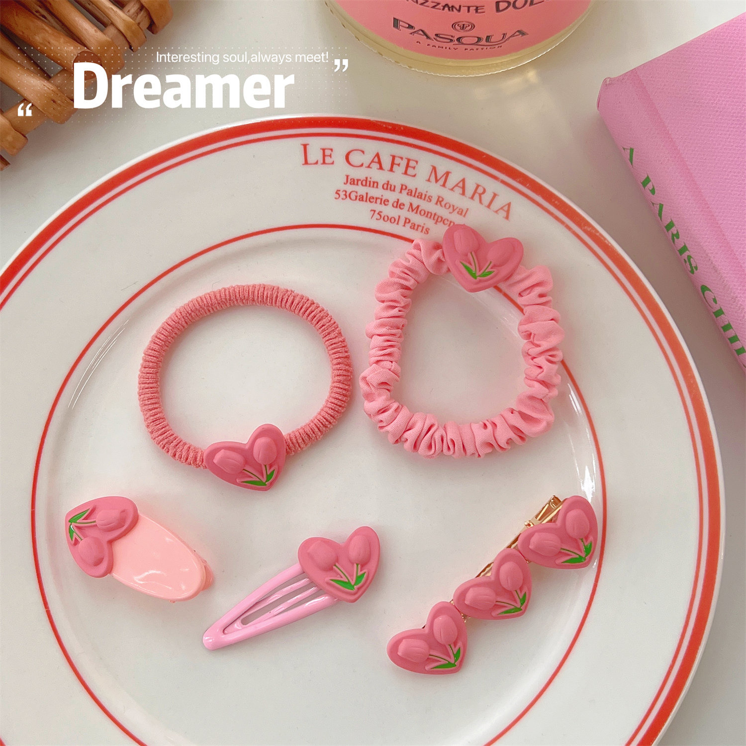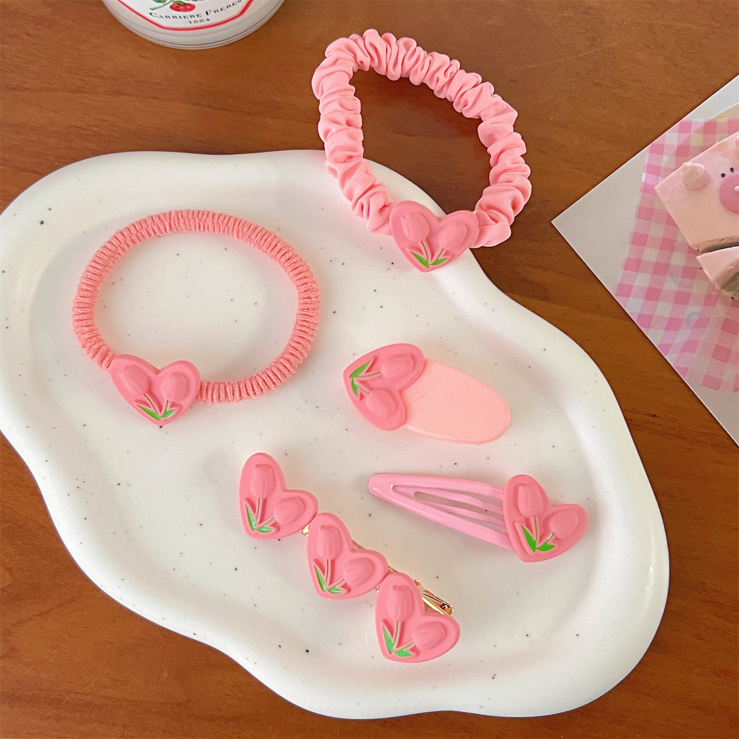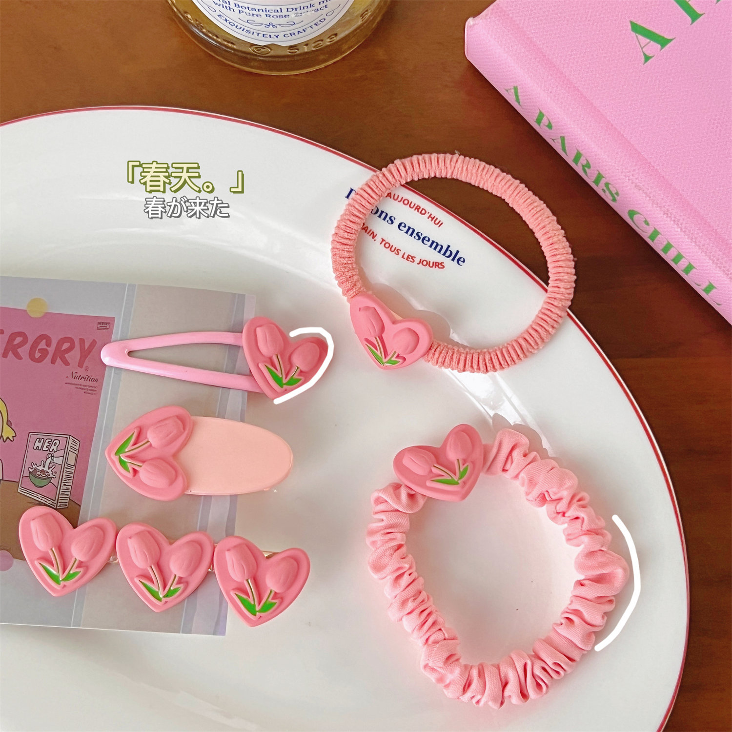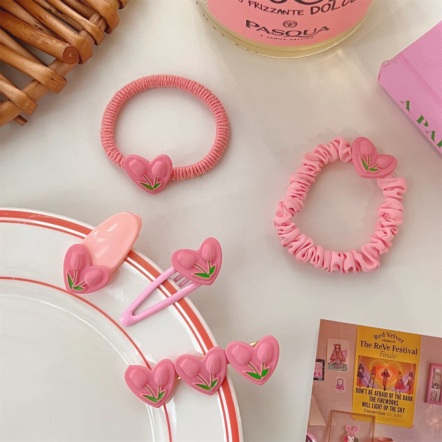 颜色 1#爱心郁金香BB夹 2#爱心郁金香椭圆夹 3#爱心郁金香鸭嘴夹 4#爱心郁金香皮筋 5#爱心郁金香小肠圈