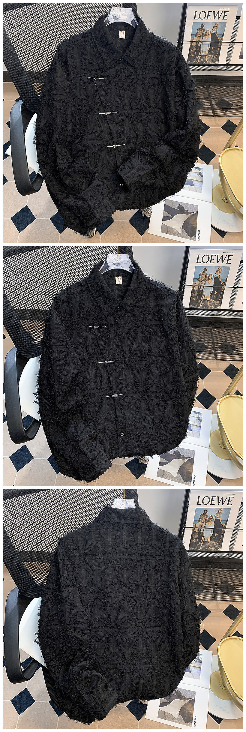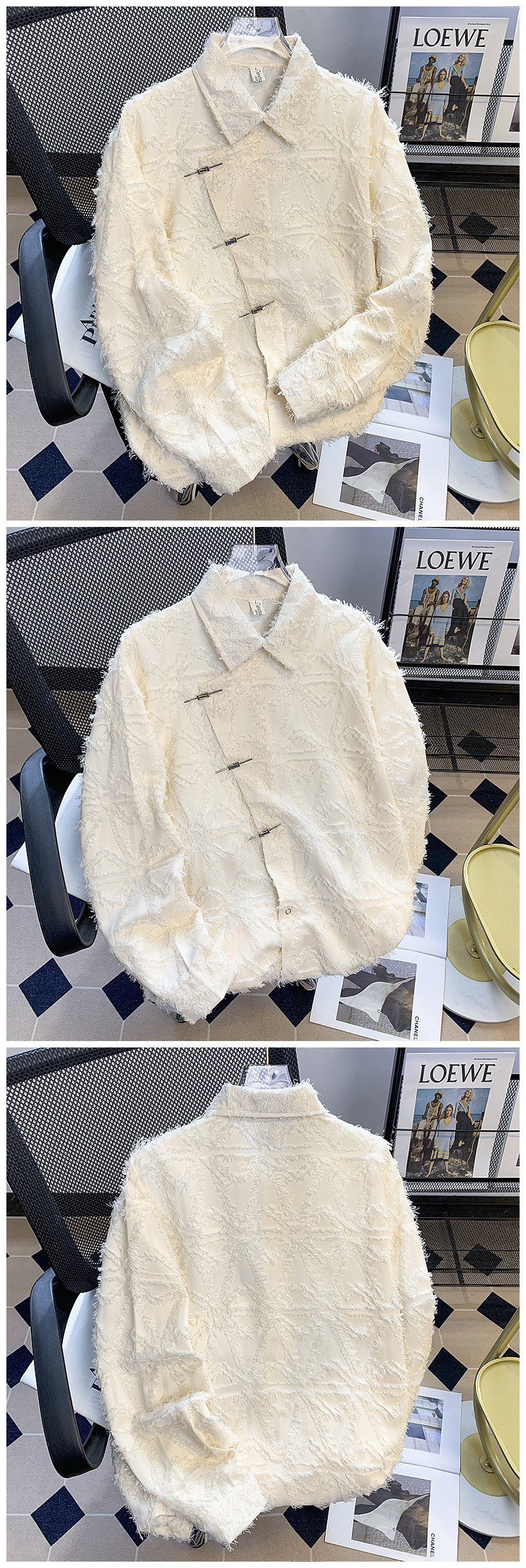 新款春季中式小众流苏毛边设计感衬衫男宽松垂感长袖衬衣痞帅百搭