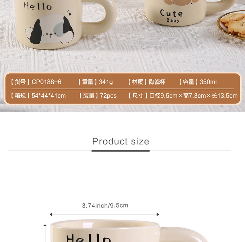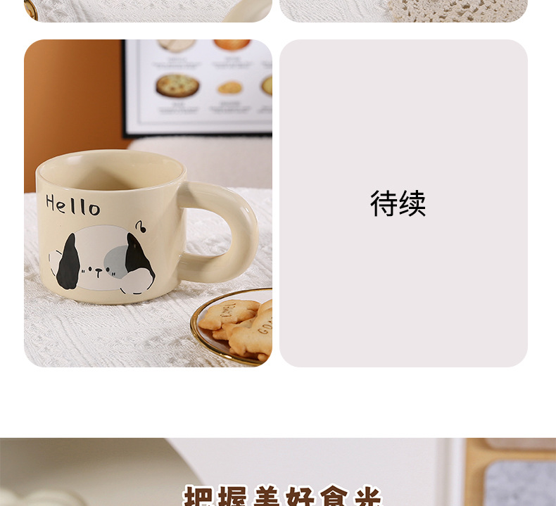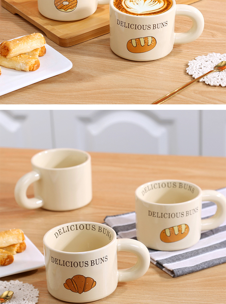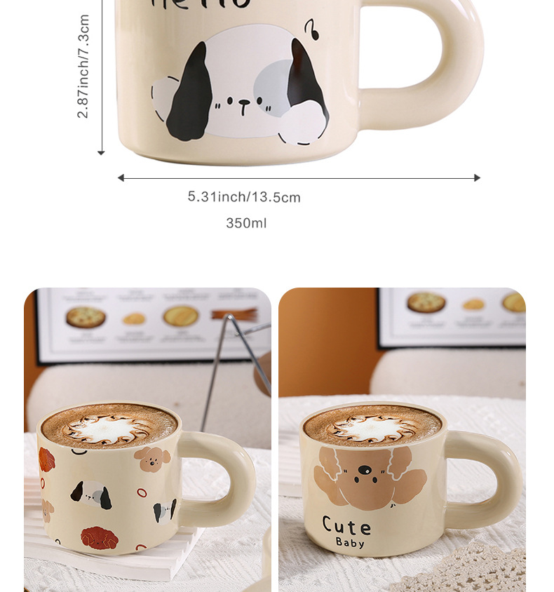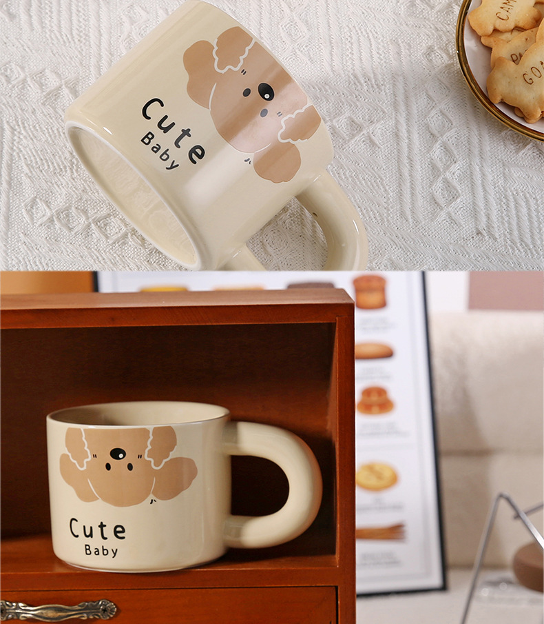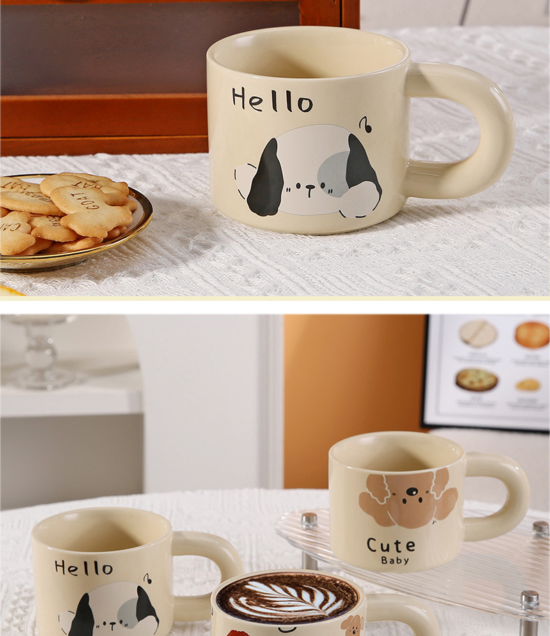 颜色 卡通小猫陶瓷杯 奶油面包陶瓷杯 彩色小狗陶瓷杯