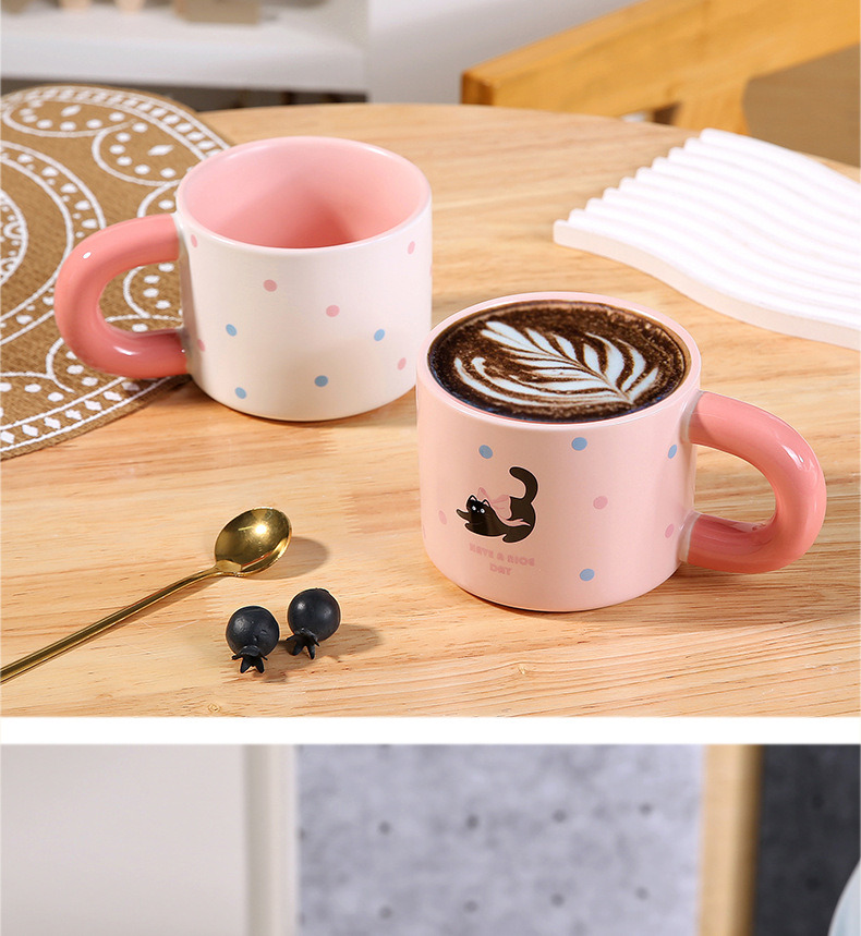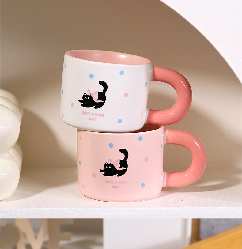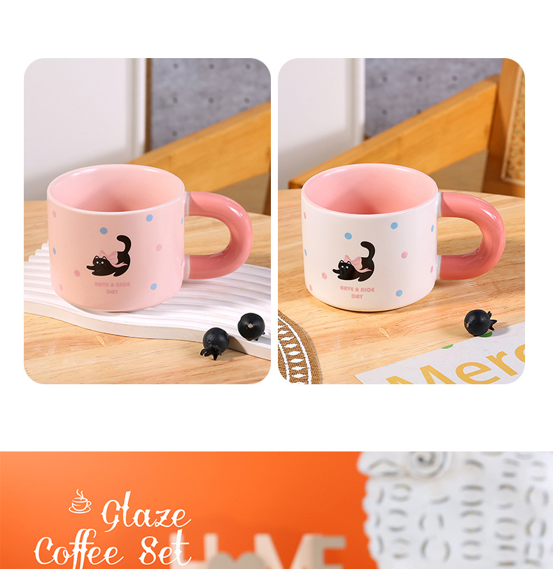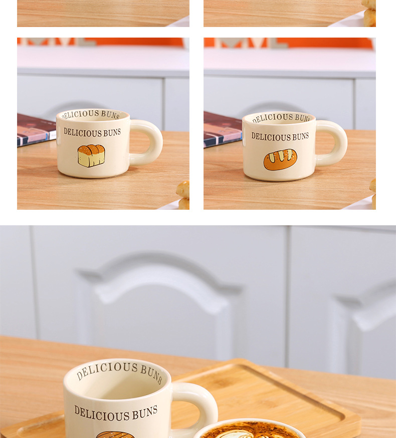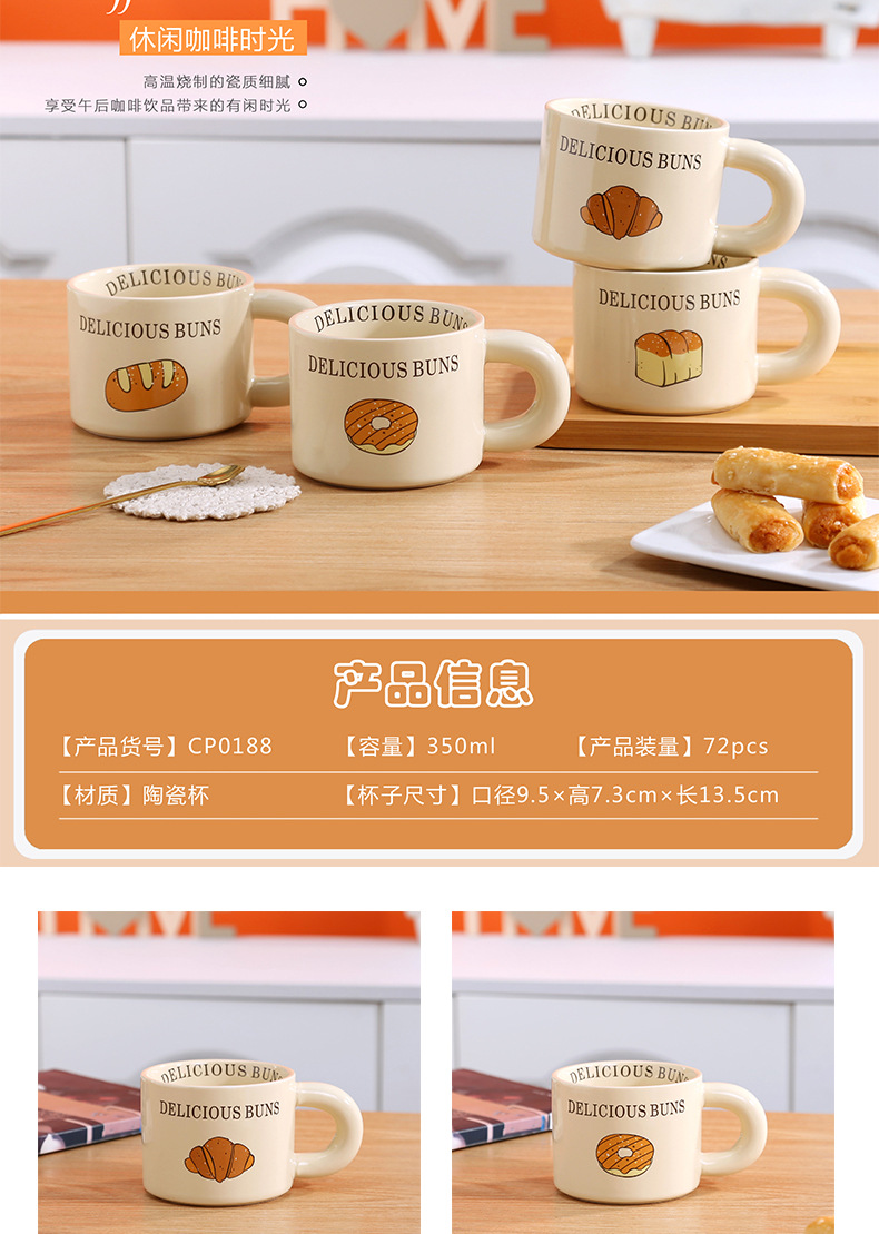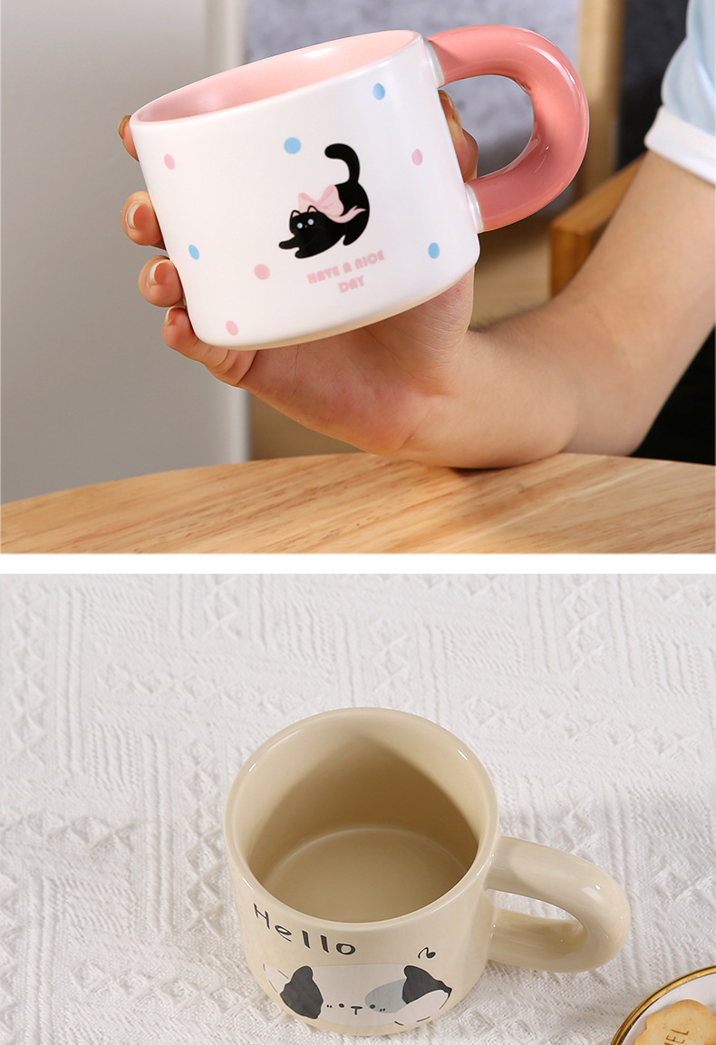 颜色 卡通小猫陶瓷杯 奶油面包陶瓷杯 彩色小狗陶瓷杯