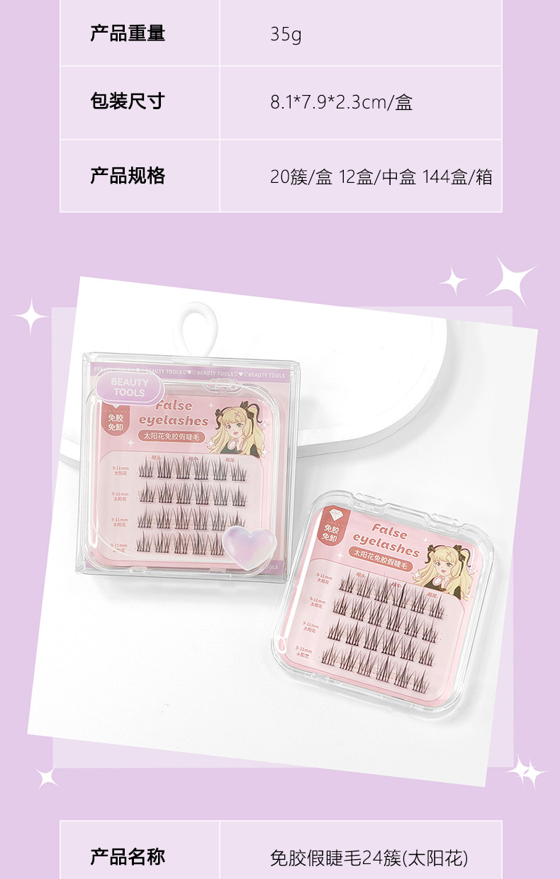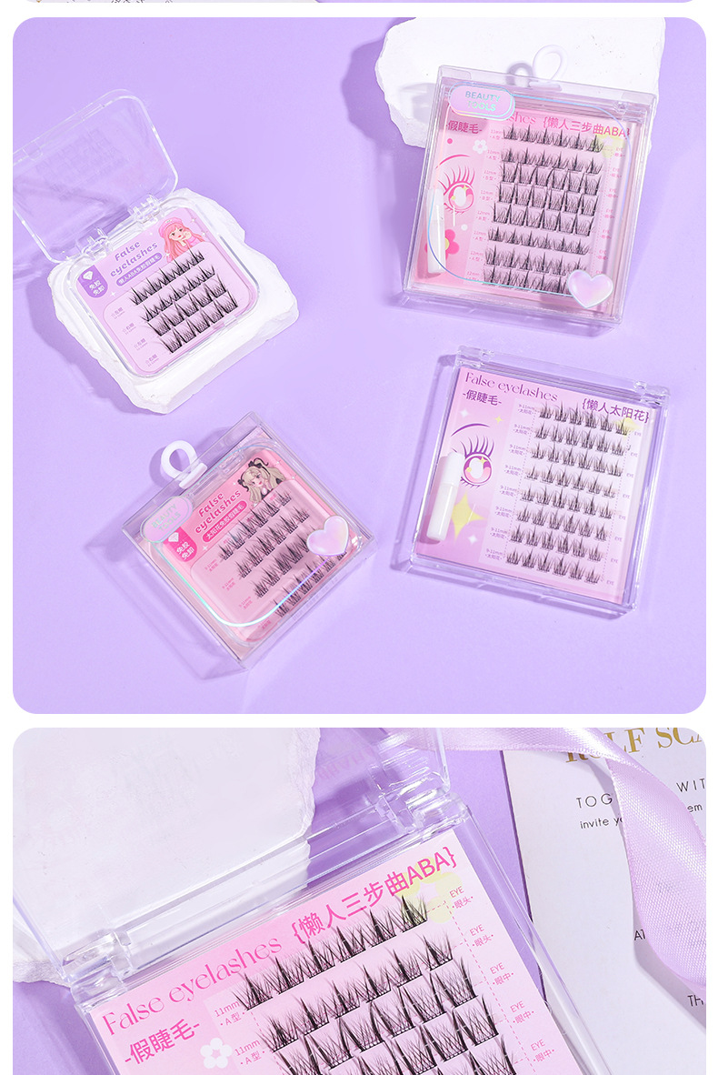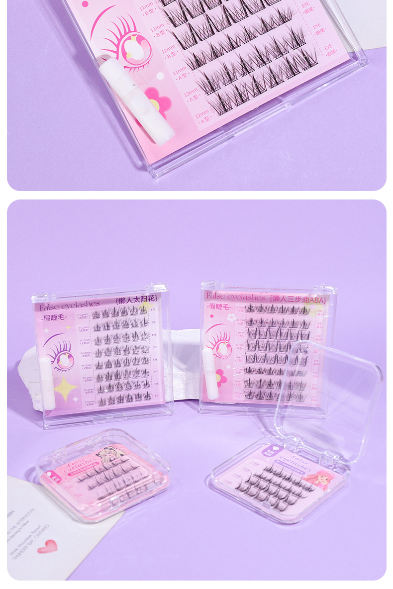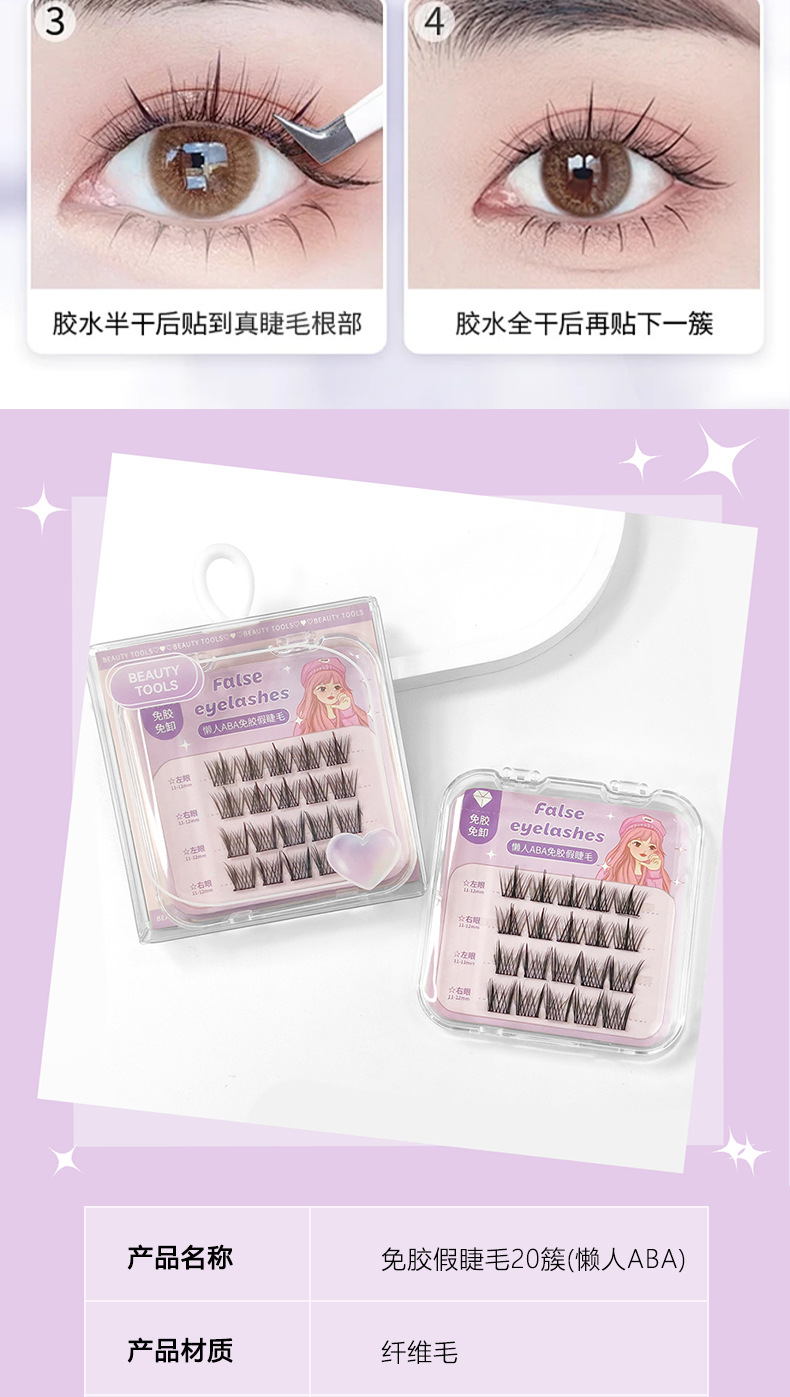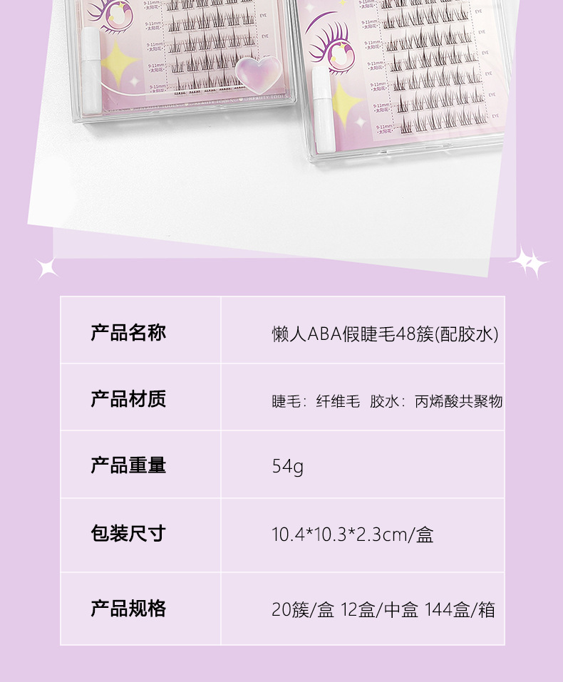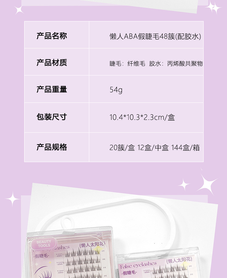 颜色 免胶假睫毛20簇(懒人ABA) 免胶假睫毛24簇(太阳花) 懒人ABA假睫毛48簇(配胶水) 懒人太阳花假睫毛48簇(配胶水)