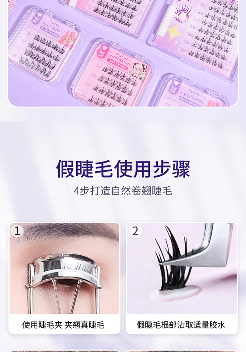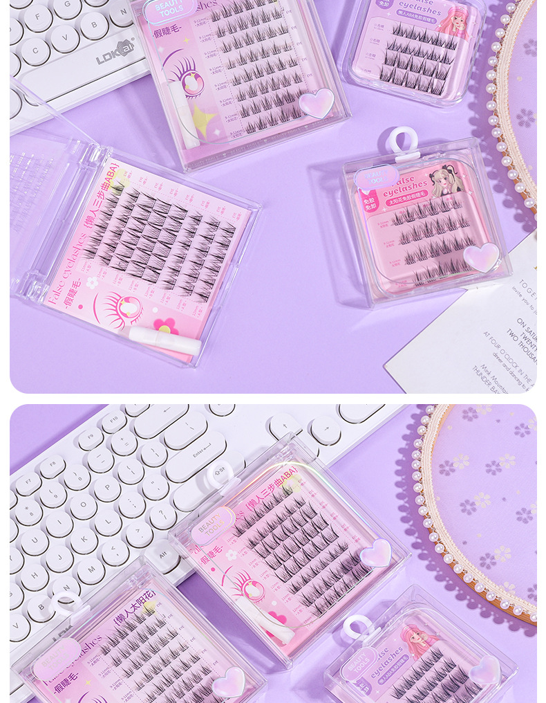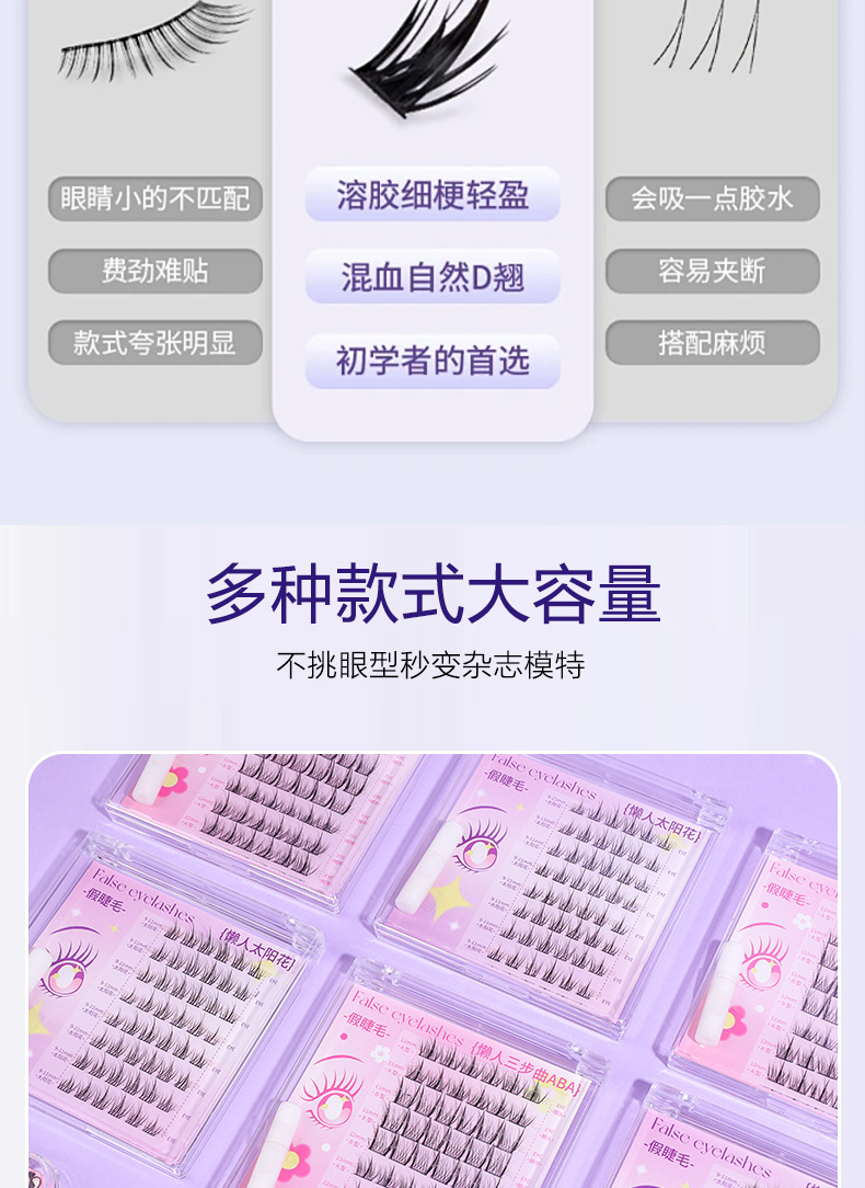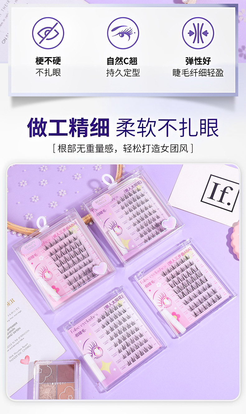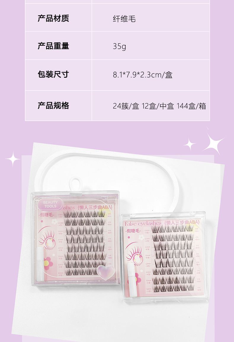 颜色 免胶假睫毛20簇(懒人ABA) 免胶假睫毛24簇(太阳花) 懒人ABA假睫毛48簇(配胶水) 懒人太阳花假睫毛48簇(配胶水)