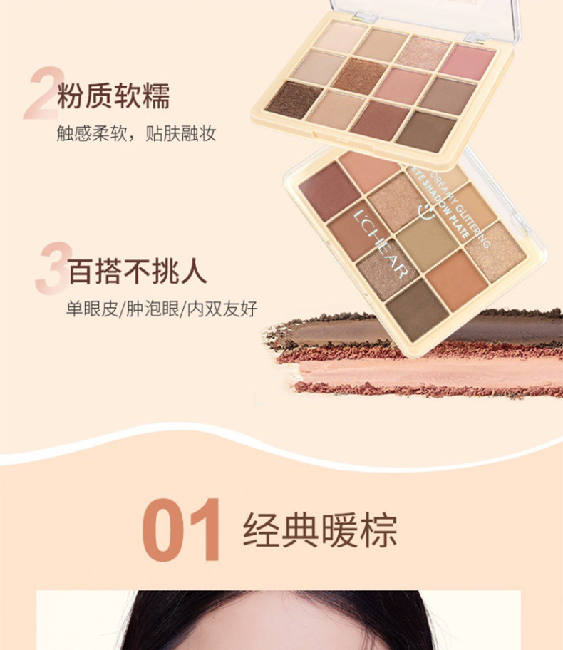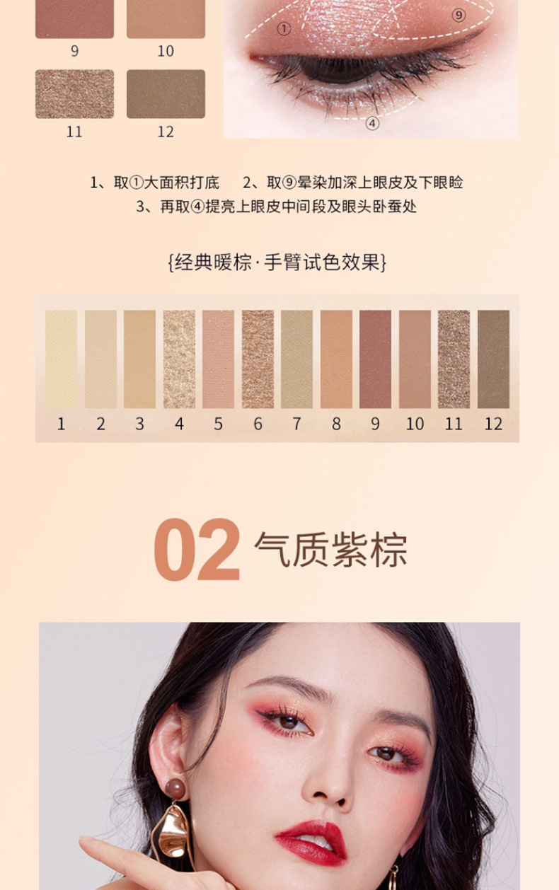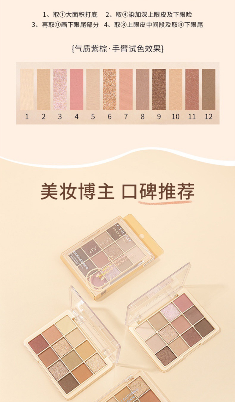 颜色 12色眼影盘#经典暖棕 12色眼影盘#气质紫棕 9色眼影盘#冰酿玫瑰 9色眼影盘#杏仁麦芬